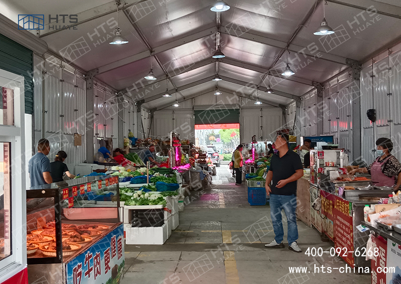 農(nóng)貿(mào)市場改造升級,過渡期就用裝配式鋁合金篷房